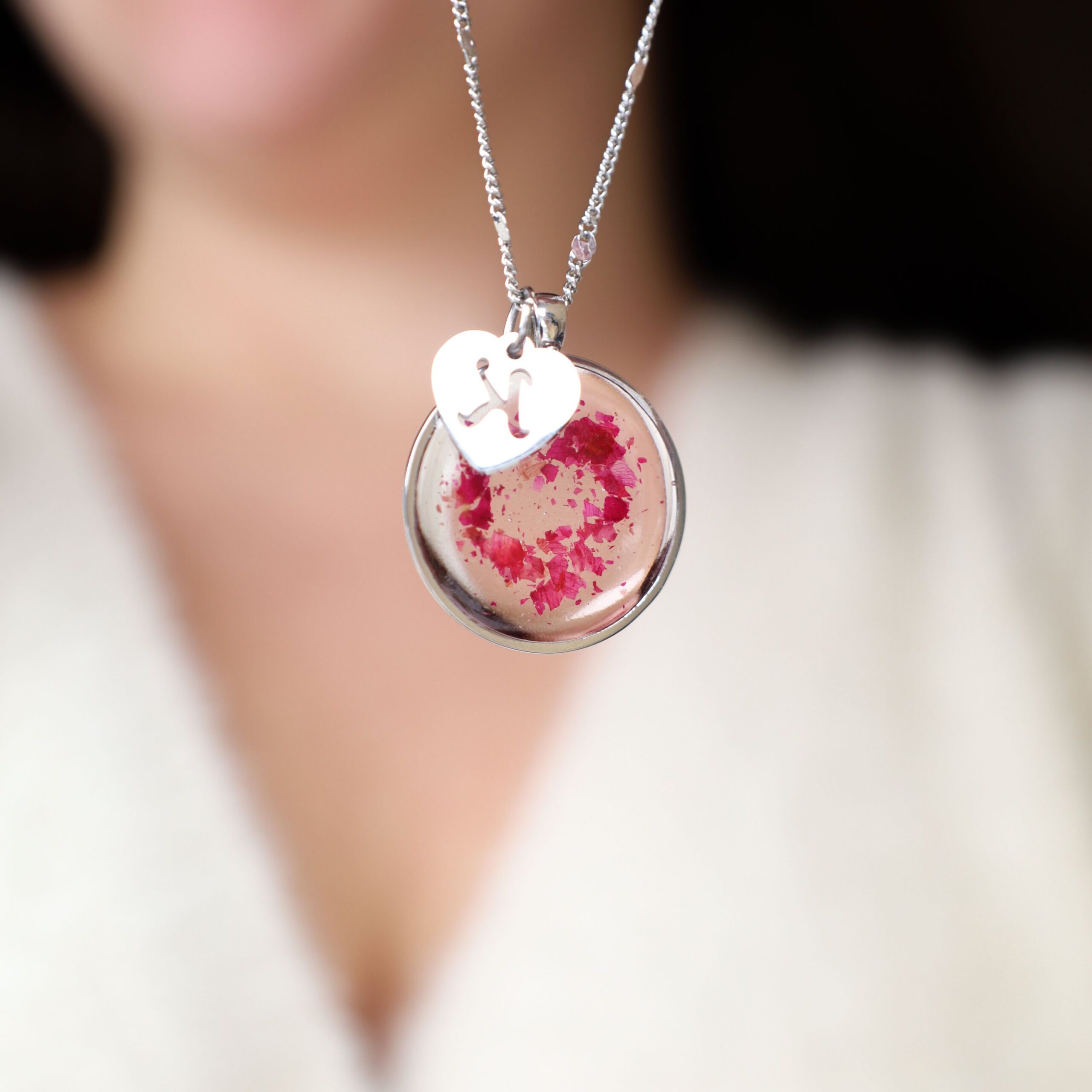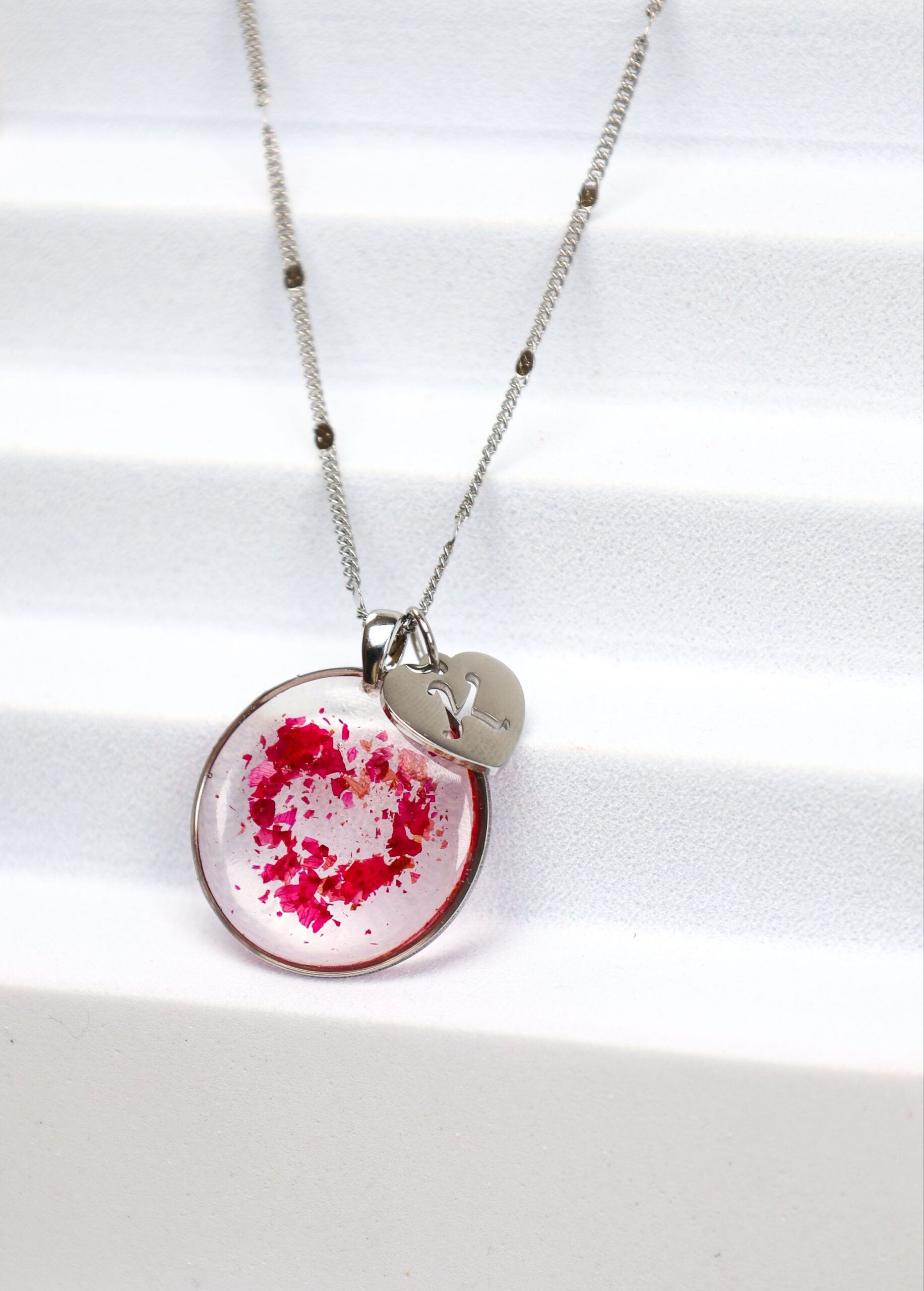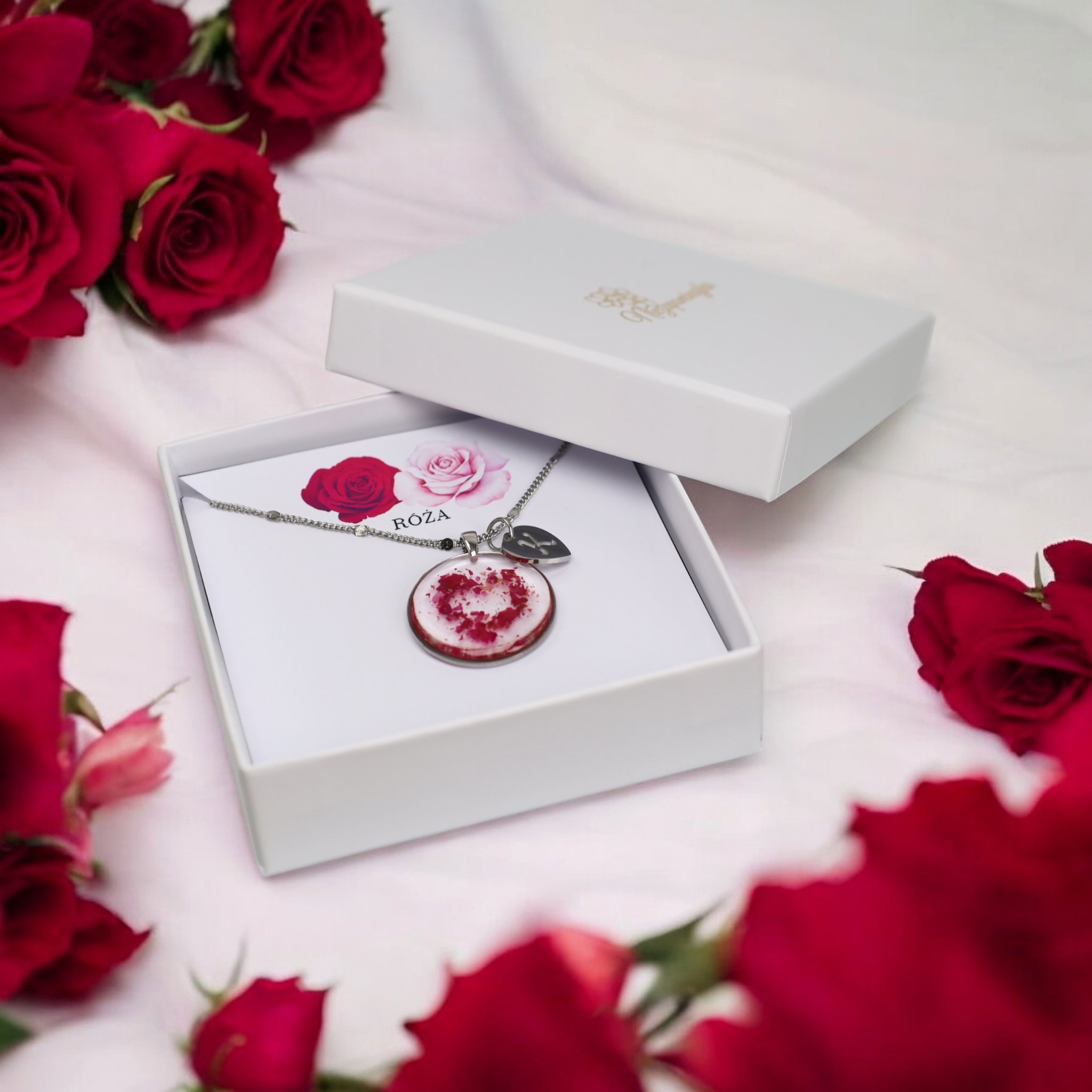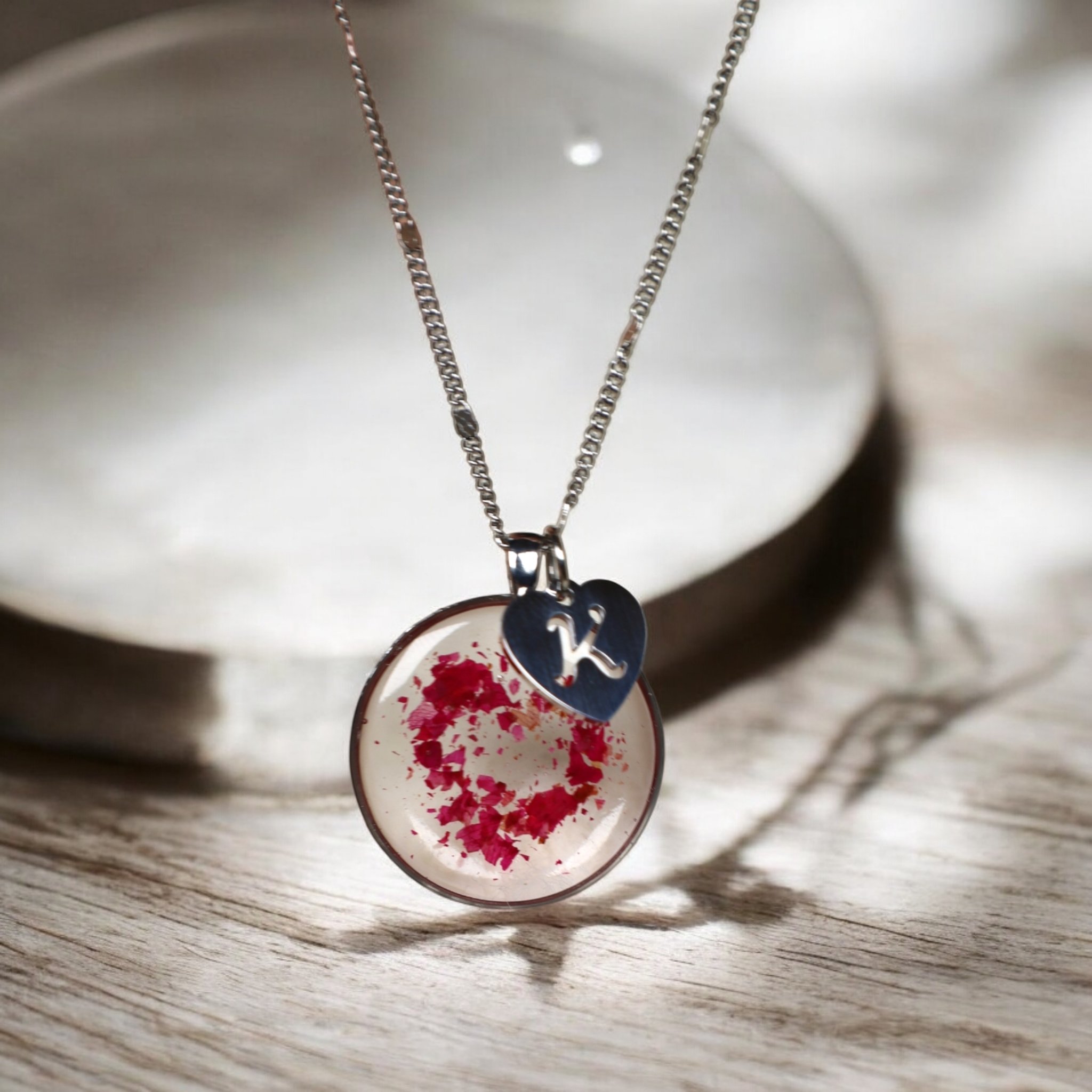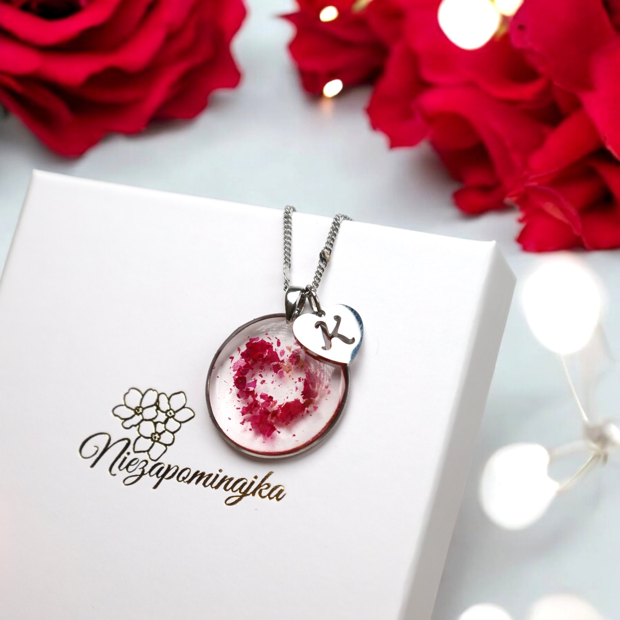 Zachwycający naszyjnik, który z pewnością przyciągnie spojrzenia i wzbudzi zachwyt. Naszyjnik wykonany z najwyższej jakości materiałów, ozdobiony płatkami róży, starannie ułożonymi w kształt serca. Każdy naszyjnik jest unikatowy. Skorzystaj z opcji personalizacji i wybierz dowolną literę co doda osobistego charakteru.