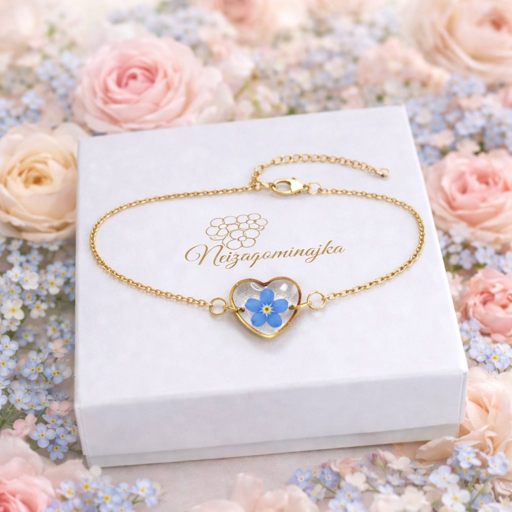 BRANSOLETKA SERCE Z NIEZAPOMINAJKĄBRANSOLETKA SERCE Z NIEZAPOMINAJKĄ