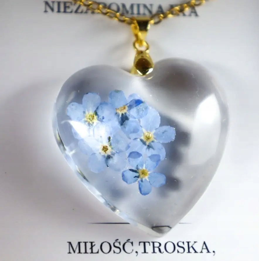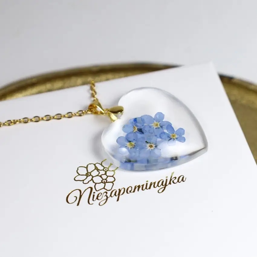 NASZYJNIK SERCE Z NIEZAPOMINAJKĄ