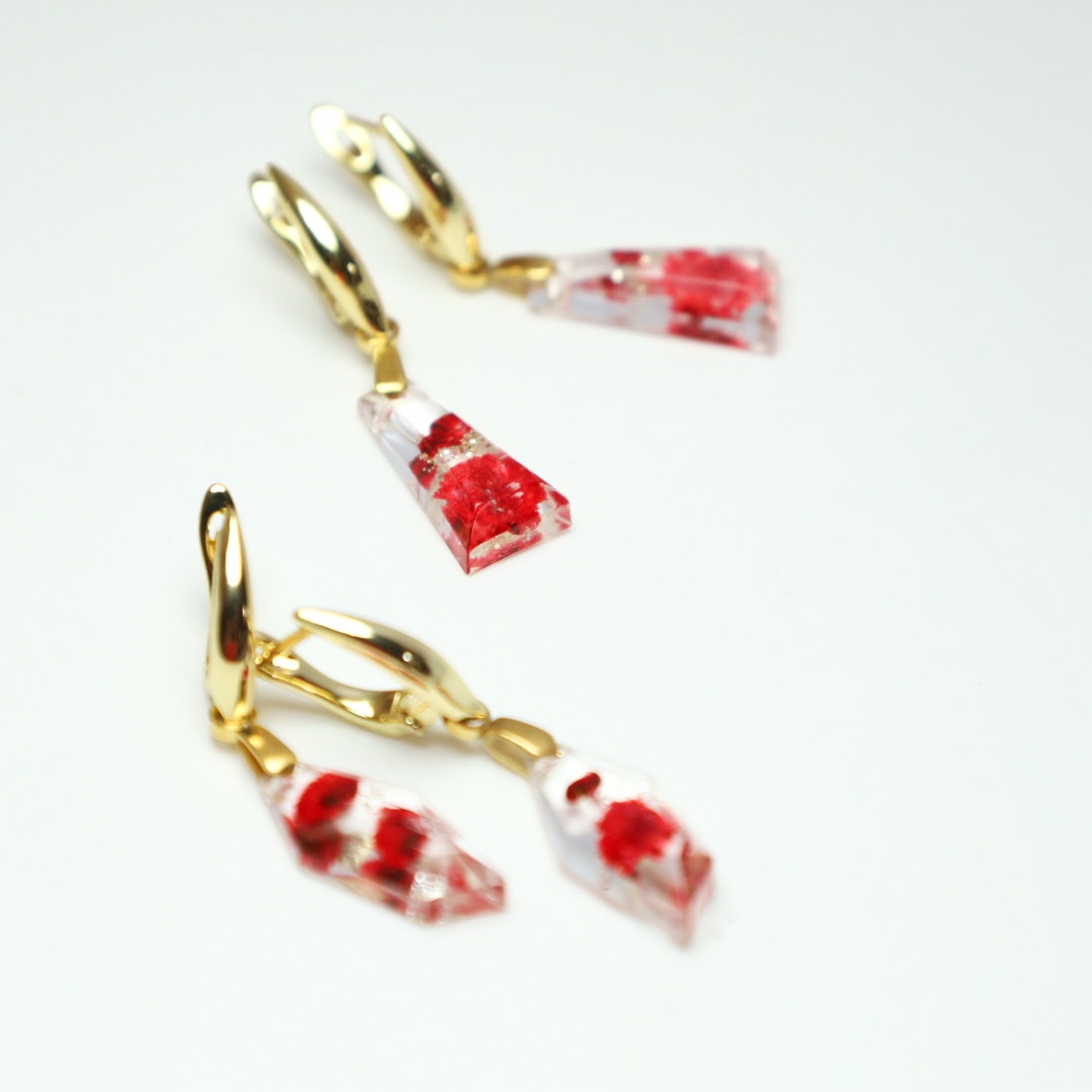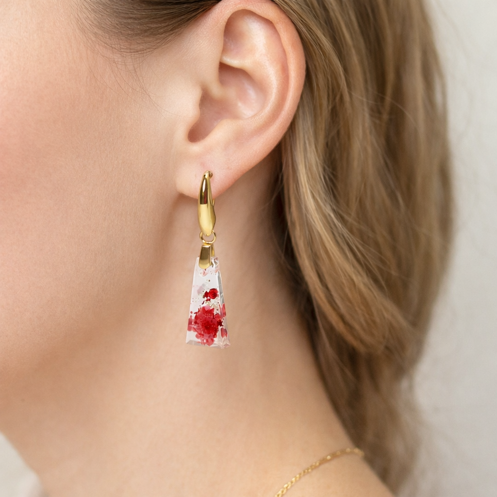Delikatne kolczyki gipsówka to wyjątkowa ozdoba, która przyciąga uwagę swoim unikalnym designem. Wewnątrz kolczyka znajdują się utrwalone czerwone kwiaty, które dodają kolczykom naturalnego i romantycznego charakteru. Złote wykończenie dodaje elegancji, a całość doskonale sprawdzi się zarówno na wyjątkowe okazje, jak i jako subtelny dodatek do codziennych stylizacji. ✨