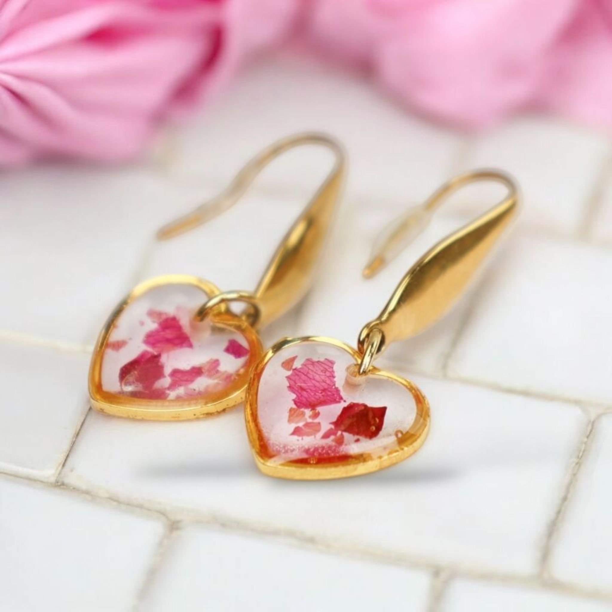 Przedstawiamy delikatne, ręcznie robione kolczyki z prawdziwymi płatkami róży. Każdy kolczyk składa się z delikatnego i bardzo lekkiego kwiatu róży, zawieszonego na złotym antyalergicznym elemencie ze stali nierdzewnej. Te unikalne ozdoby łączą naturalne piękno kwiatów z nowoczesnym stylem, dodając elegancji każdej stylizacji. Idealne na każdą okazję.