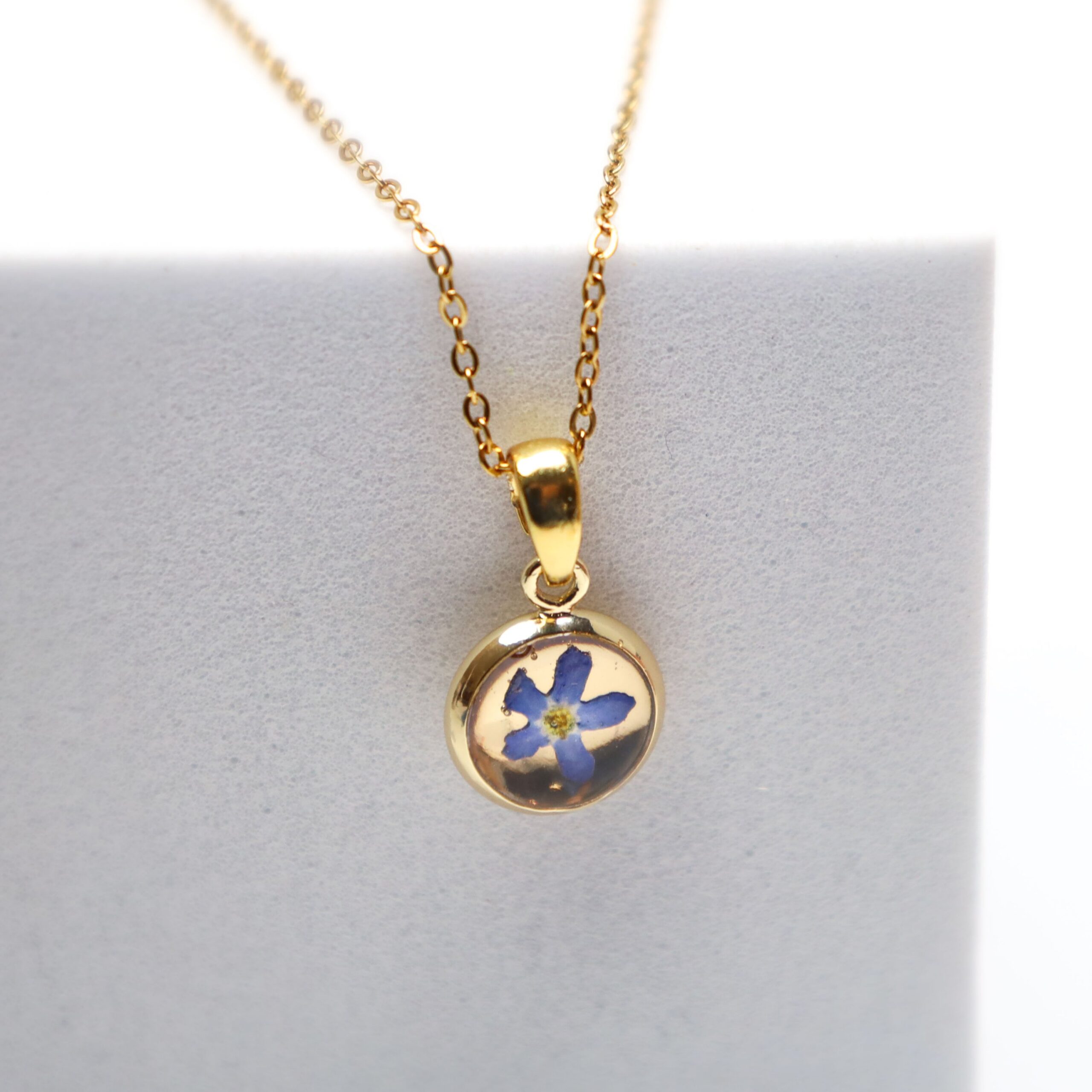 Niepowtarzalny wisior z bajecznym kwiatem Niezapominajki, wykony ręcznie z prawdziwych niezapominajek. Wyjątkowy unikat, w którym w żywicznym krysztale został umieszony niebieski kwiat Niezapominajki.