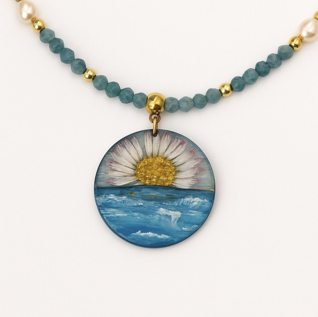 Unikatowy charakter: naszyjnik jest ręcznie malowany i tworzony w pojedynczym egzemplarzu; drobne różnice w odcieniach i detalu podkreślają jego niepowtarzalność.