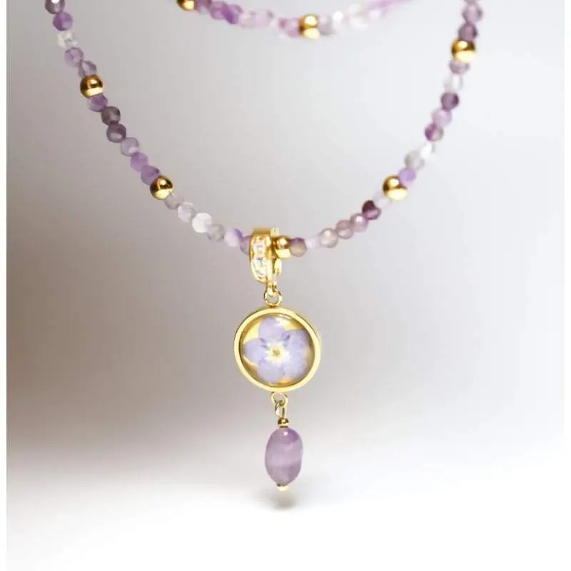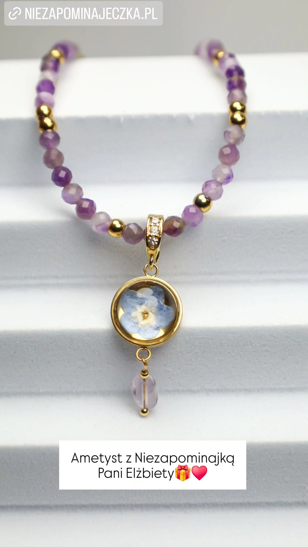 NASZYJNIK AMETYST Z NIEZAPOMINAJKĄ