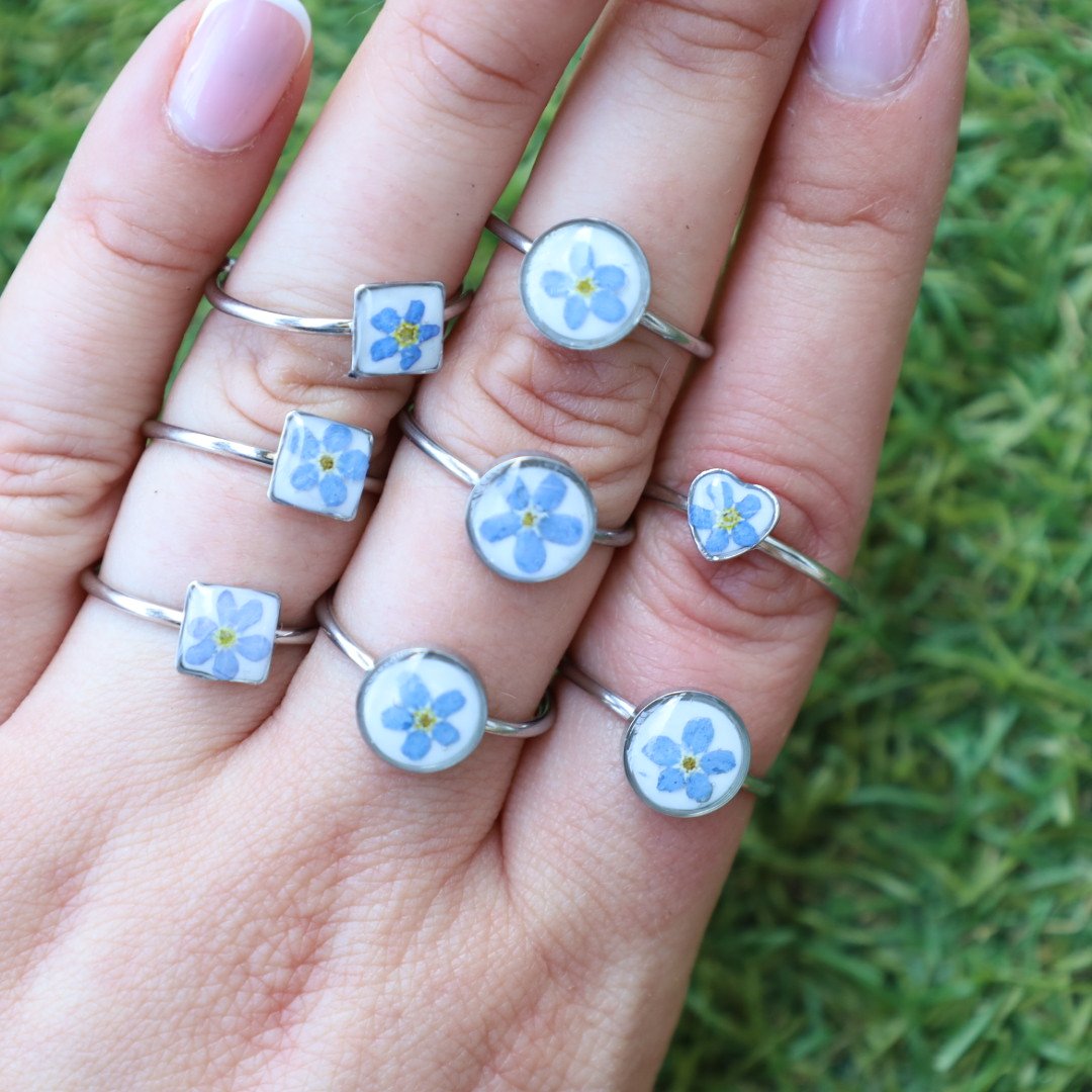 Uroczy pierścionek z jednym kwiatem Niezapominajki. Ten delikatny i stylowy dodatek nada Ci lekkości i przybliży Cię do natury za każdym razem gdy na niego spojrzysz.
